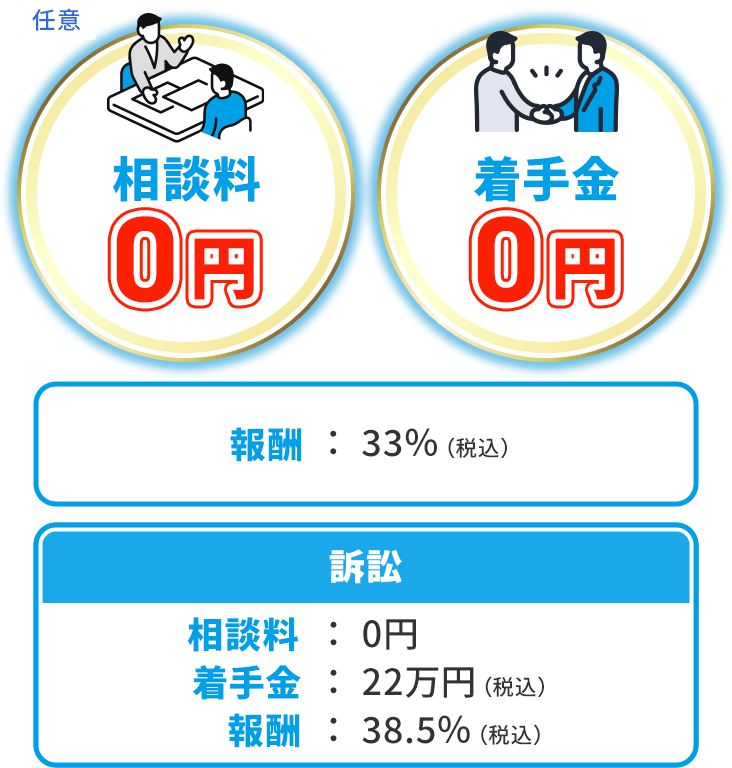 ご依頼は着手金0円で対応。まずはお気軽にご相談ください。 ※労働訴訟になった場合は着手金が発生します。